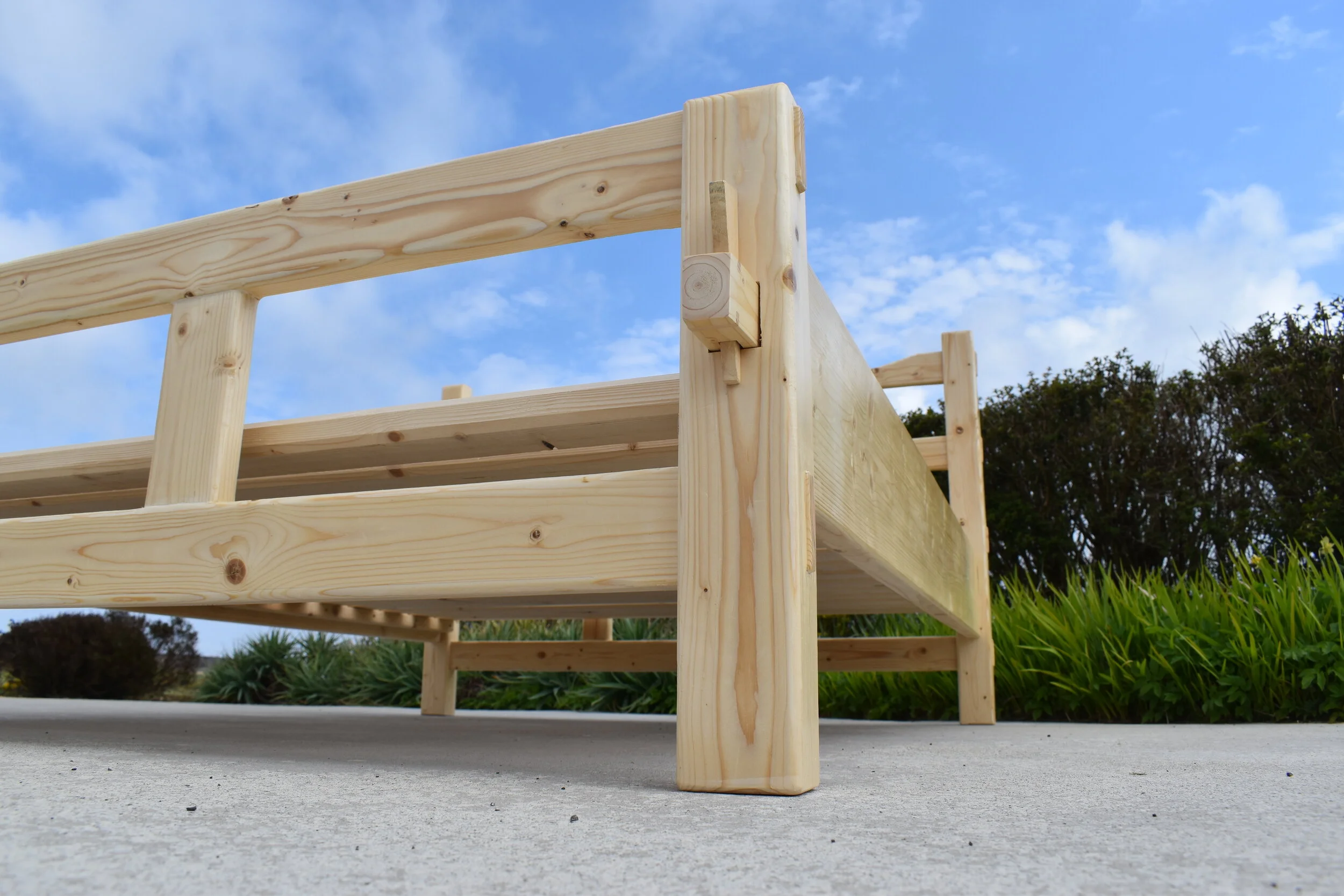 Wooden pegs act as pins to lock your bed together for a strong mechanical joint.