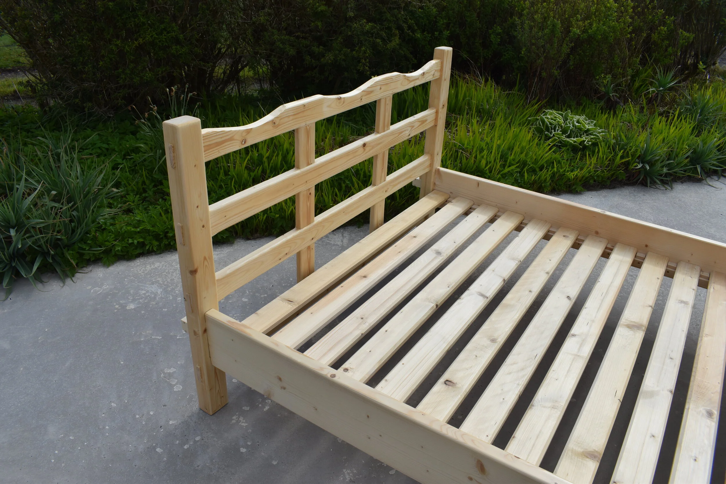 Rustic king size solid wood bed with wooden joinery throughout. 100% solid wood, no metal fixings!
